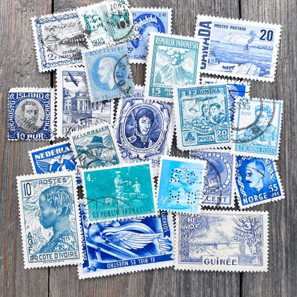 20 Random Vintage and Antique Aqua and Blue Postage Stamps